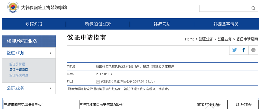 2、韩国驻上海总领事馆授权我中心为宁波市唯一代办赴韩商务、探亲访友及留学签证机构。领馆也认可通过我中心代办赴韩旅游签证可减免部分材料。