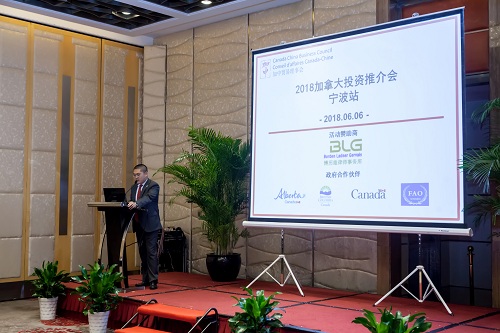 2018年6月6日下午,由加拿大加中贸易理事会主办,加拿大驻上海总领馆、宁波市人民对外友好协会协办的宁波—加拿大投资贸易推介会在宁波万豪酒店举行。70余名宁波企业代表应邀参加了推介会。加拿大驻沪副总领事白瑞恩出席会议并致欢迎辞。市外办副主任陈国苗在会上作了讲话。他介绍了宁波市和宁波的经贸发展情况,他表示希望通过此次会议,为中加双方进一步开展对话、增进了解、寻找商机搭建平台,期待会议能成为中加沟通的桥梁和窗口,推动两地在港口经济、智能制造、医疗医药、能源资源、金融服务、清洁技术等领域打造新的合作亮点,加快培育合作和竞争的新优势,增添共同发展的新动力,推进双方各方面的合作取得更大成果。之后,加方详细介绍了加拿大的投资优势及行业合作机会,包括食品贸易、国际技术转移、商业地产、银行服务等情况。最后加方与参会的宁波企业代表进行了交流和互动。(友协办发布)