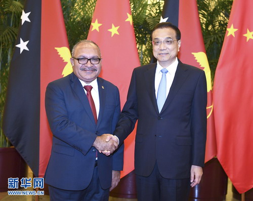 2018年6月21日下午,国务院总理李克强在人民大会堂同来华访问的巴布亚新几内亚总理奥尼尔举行会谈。 李克强表示,中国同巴新关系近年来稳步发展,成为中国同太平洋岛国关系的典范。中方赞赏巴新坚定奉行一个中国政策,支持巴新自主选择适合本国的发展道路,愿将“一带一路”倡议同巴新的发展战略更好对接,发挥互补优势,在经贸投资、能源资源、基础设施、工业产能等重点领域创造更多合作机遇,打造中巴新合作新的亮点。 李克强指出,中方支持巴新办好今年亚太经合组织(APEC)领导人非正式会议,愿加强两国在联合国、APEC、太平洋岛国论坛等多边机制和应对气候变化问题上的协调配合,维护发展中国家的共同利益。 奥尼尔表示,巴新同中国建交以来,两国关系始终保持强劲发展势头,两国政府间和人民之间都保持密切友好关系。巴新愿同中方扩大双边贸易和投资,推进天然气、工业园、社区大学等重点项目合作,扩大旅游、人文等领域交流合作。感谢中方对巴新主办APEC会议的大力支持。 会谈后,两国总理共同见证了多项双边合作文件的签署。 当天下午,奥尼尔向人民英雄纪念碑敬献花圈。